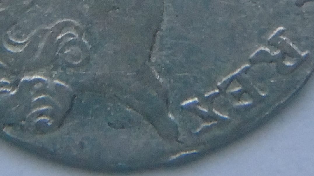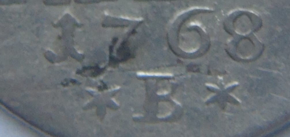 | 1 | FRIDERICUS BORUSSORUM REX | (czteropłatkowy kwiatek) 12 (czteropłatkowy kwiatek) EINEN REICHS THALER 1768 ✶B✶ |