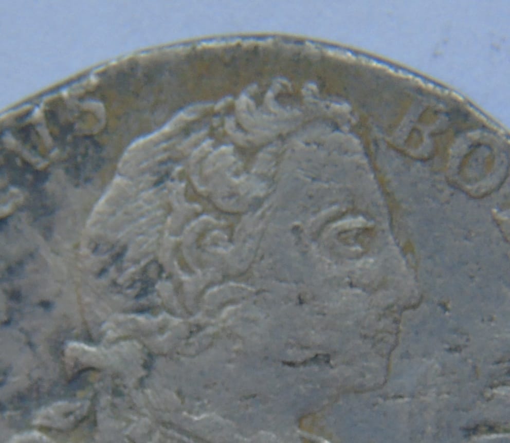 | 5 | FRIDERICVS BORVSSORVM REX | z gewandem (falista kreska pod ramieniem); (pięciopłatkowy kwiatek) VI (pięciopłatkowy kwiatek) EINEN REICHS THALER 1750 ✪B✪ |