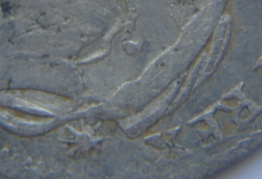 | 4 | FRIDERICVS BORVSSORVM REX bez gewandu (brak falistej kreski pod ramieniem) | (trójlistna rozeta zwrócona w stronę nominału) VI (trójlistna rozeta zwrócona w stronę nominału) EINEN REICHS THALER 17✪B✪50 |
